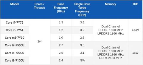 Пока представлены шесть моделей Kaby Lake: три из серии Y по 4,5 Вт, три U по 15 Вт.
