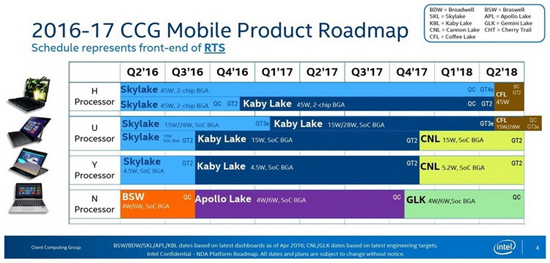 Планы Intel по выпуску мобильных Cannonlake и Coffee Lake
