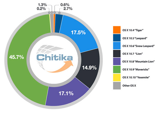 По данным рекламной сети Chitika, 0,2% американских пользователей Mac установили операционную систему OS X Yosemite, находящуюся на раннем этапе тестирования.