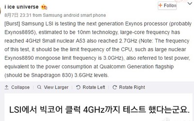 Samsung Exynos 8895 получит частоту 4 ГГц