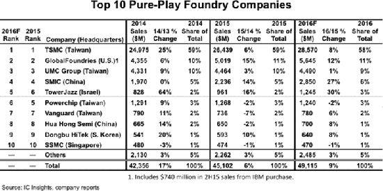 На днях представители Samsung озвучили планы по экспансии на рынок контрактных полупроводников. Так, в ближайшие пять лет контрактное производство компании должно захватить не менее 25 % рынка. По итогам 2016 года, как предположили аналитики IC Insights, доля Samsung на рынке контрактных чипов достигала 7,9 % (в компании не раскрывают данные о работе подразделения). Лидеру рынка — компании TSMC — в 2016 году досталось 50,6 % этого рынка. Компании GlobalFoundries и UMC, соответственно, удерживали 9,6 % и 8,1 %. Порядка 6 % досталось китайской SMIC. В ближайшие годы, тем самым, Samsung должна утроить долю на контрактном рынке, что она и собирается сделать.
