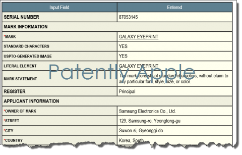 Вторым зарегистрированным именем стал Samsung Eyeprint, для которого компания указала все те же сферы применения.