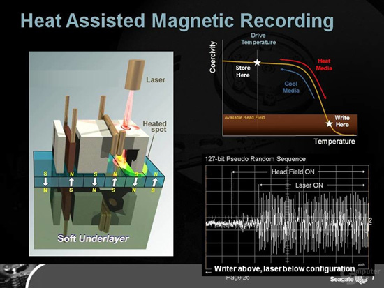 Этот производитель продвигает альтернативную технологию HAMR (heat-assisted magnetic recording). В ней для повышения плотности используется локальный подогрев носителя, тогда как в MAMR (microwave-assisted magnetic recording) — микроволновое поле, создаваемое специальным генератором.