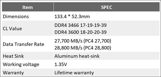 Представленные изделия функционируют при напряжении питания 1,35 В. В семейство Xtreem вошли модули DDR4-3466 и DDR4-3600. В первом случае тайминги составляют 17-19-19-39, во втором — 18-20-20-39.