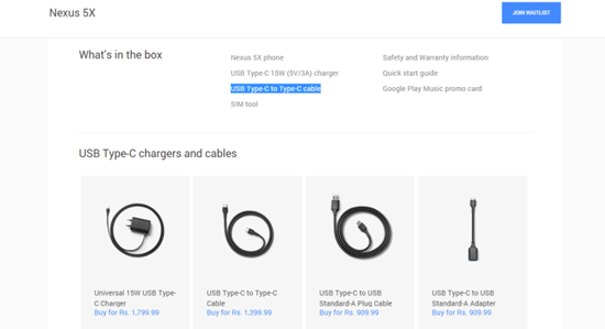 На сайте компании Google показано, что Nexus 5X поставляется с 15-ваттным зарядным устройством и кабелем USB Type-C — Type-C. Это означает, что пользователю нового телефона придется потратить еще примерно 13 долларов США для приобретения кабеля USB Type-C — USB Standard (стандартный USB), поддерживаемый большинством современных компьютеров. Новый стандарт USB предполагает более высокую скорость зарядки, но соответствующий кабель пока недостаточно распространен.