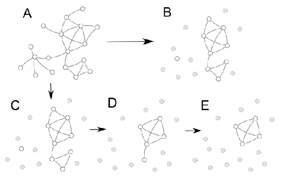 Как только эти узлы покинули сеть, весь граф практически мгновенно распался на части в результате «цепной реакции».
