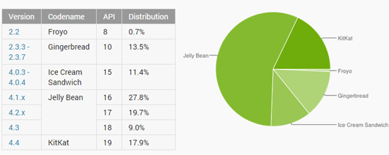 Доля KitKat в Android — 17,9%