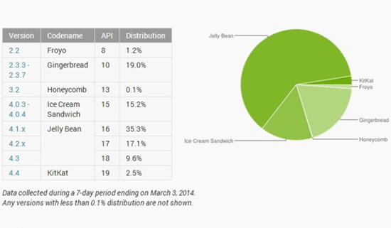 Доля KitKat в Android — 2,5%