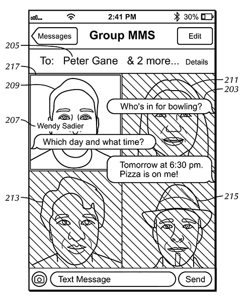 «По сути, Apple предлагает добавить аватар или фотографию контакта в качестве фонового изображения для чата с пользователем. Для групповых чатов на экране может находиться сразу несколько изображений», – говорится в патенте. Если для какого-то из пользователей в адресной книге отсутствует фотография, в качестве фона будет выбрано шаблонное изображение.