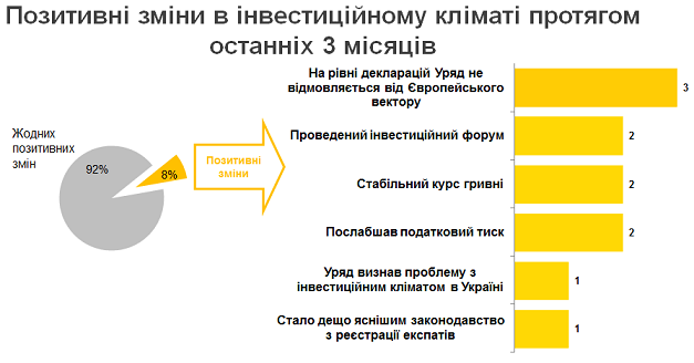 «У нас много прекрасных законов, но проблемы бизнеса они не решают. Все дело в том, что, в нынешних условиях, законы фиктивны. На практике их нормы не определяют то, за что отвечает коррупция и другие пагубные проявления нашей системы. Поэтому мы считаем, что повышение инвестиционной привлекательности украинских рынков возможно только после решения вопроса с коррупцией, создания условий для справедливого судопроизводства. Не менее важным является и фактор равных условий для представителей всех бизнесов, чего в Украине пока не наблюдается», - говорит Исполнительный директор ЕБА, Анна Деревянко.
