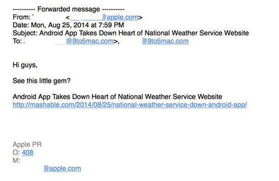 PR-служба Apple может даже «подсказать» журналистам нужные статьи. Гурман привел письмо сотрудников компании в адрес издания 9to5Mac. В нем содержится ссылка на статью, в которой мобильная платформа Android показана в отрицательном свете.