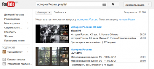 Как известно, YouTube позволяет формировать плейлисты, чем многие пользователи успешно пользуются, создавая тематические коллекции интересных видео. Иногда, вместо поиска отдельных роликов, гораздо удобнее найти уже готовый плейлист, содержащий множество информации на интересующую вас тему. Для этого используем параметр playlist.