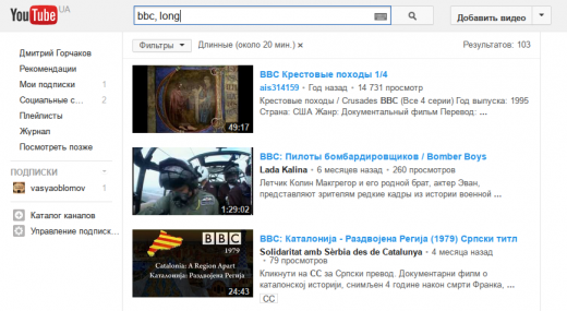 Если вам нужно отсеять слишком короткие или, наоборот, длинные ролики, то используем соответственно параметры long и short. Первый отображает фильмы длиной 20 минут и более, второй — только те ролики, продолжительность которых не превышает четырех минут.