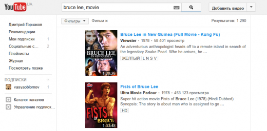 YouTube содержит достаточно легальных полнометражных фильмов, но попасть на них в результатах поиска может быть не так просто. Поэтому используйте парамер movie для их быстрого обнаружения.