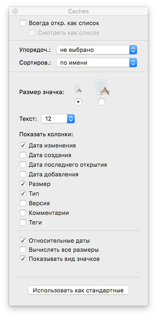 Чтобы применить настройки ко всем папкам и файлам, нажмите «Использовать как стандартные». Вообще, в OS X еще много пусть и мелких, но довольно полезных возможностей, о которых мы периодически будем вам рассказывать.