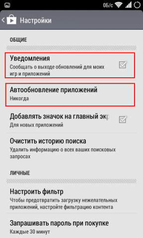 В окне настроек нас интересует опция «Автообновление приложений». Она имеет три возможных значения.