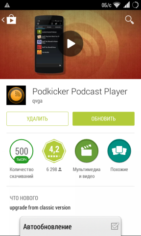 Кроме полного отключения обновлений существует также возможность отключить уведомления для конкретного приложения. Для этого выберите вариант "Только через Wi-Fi", а затем откройте в Play Маркет страницу интересующей вас программы. Нажмите кнопку меню и появится всплывающая подсказка, в которой надо снять флажок с опции "Автообновление".