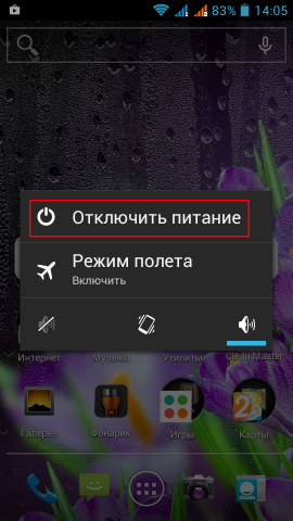 1. Нажмите и удерживайте аппаратную кнопку питания до тех пор, пока не появится меню выключения.