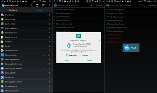 5. Снимите галочки со всех процессов. Во время деактивации первого процесса предоставьте приложению root-права.