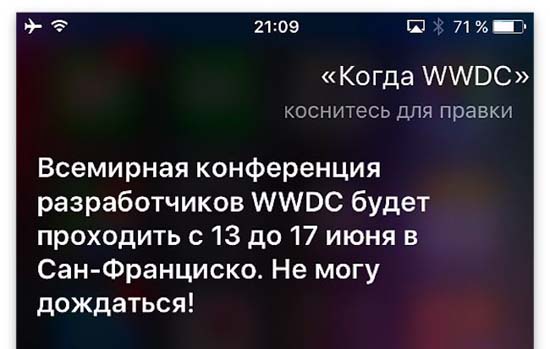 Давайте спросим у Apple «Когда состоится WWDC» (имя конференции в русской транскрипции произносите как «дабл-ю дабл-ю ди си».
