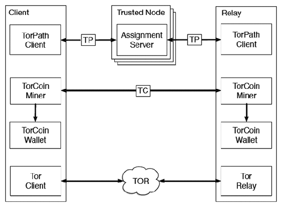 Внедрение доверенных серверов требуется для обеспечения справедливого распределения монет, чтобы участники сети не координировали свои действия, обмениваясь токенами на полосу пропускания. Схема не требует особых изменений в нынешнюю архитектуру сети Tor, а также в нормальную работу клиентов. Узлы просто будут иногда получать назначения от assignment-серверов с указанием, на какие другие узлы следует направить трафик, вместо того, чтобы произвольно выбирать их из каталога Tor. Вдобавок, на компьютеры майнеров нужно поставить программу TorCoin Miner для мониторинга трафика через туннель Tor TLS.