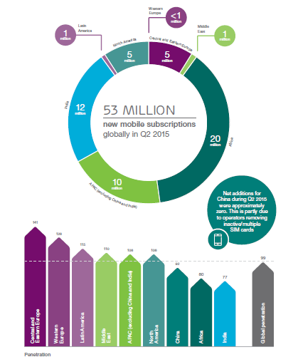 Компанія Ericsson опублікувала чергове видання звіту Ericsson Mobility Report за другий квартал 2015 року, в якому йдеться про те, що рівень проникнення стільникового зв'язку в усьому світі склав 99%.