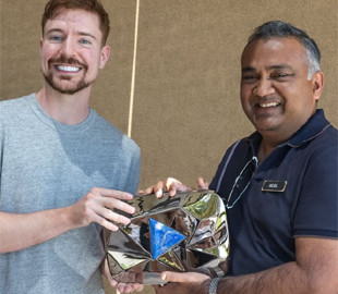 Гендиректор YouTube Ніл Мохан вручив Джиммі Дональдсону (MrBeast) унікальну "кнопку": трофей на замовлення з полірованого металу з виразним синім каменем у центрі. У соцмережах блогер опублікував фото з підписом: "400,000,000 Subscriber Play Button! Thank you YouTube".