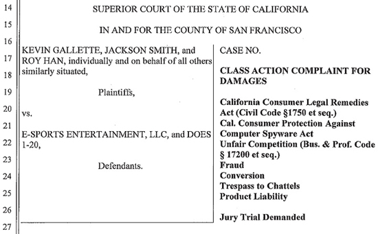 Несмотря на столь активную защиту, компании не удалось обойтись без суда – на ESEA было подано заявление в верховный суд Калифорнии.