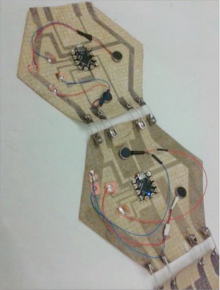 Створений ними прототип шарфа складається з шестикутних тканинних елементів, у які вбудований електропровідний матеріал. Деякі з таких модулів мають також інтегровані нагрівачі, а інші – вібромотори. Усі елементи контролюються головним блоком, який уже сприймає команди від смартфона.
