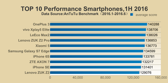 Рейтинг возглавляет смартфон OnePlus 3, получивший более 140 тыс. баллов, на втором месте - ранее лидировавший Vivo XPlay 5 Elite. Устройство LeEco Le Max 2 удостоилось примерно 138 тыс. баллов и оказалось на третьем месте. Лидеры обладают мощным мобильным процессором Qualcomm Snapdragon 820 и 6 ГБайт оперативной и 64 ГБайт флэш-памяти.