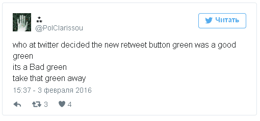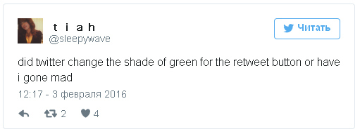 "Twitter действительно сменил оттенок зеленого на кнопке ретвита, или я сошла с ума?"