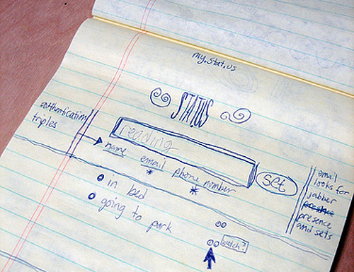 Эскиз интерфейса Twitter пятнадцатилетней давности