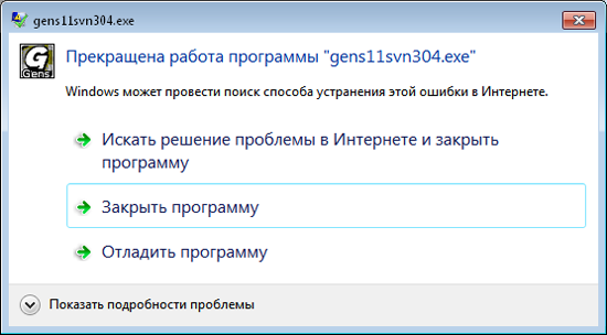 На помощь пришёл друг-тасер AnS (кстати, наш соотечественник). Он обнаружил, что крах происходит только с последними версиями Gens, в то время как одна из более старых версий работает надёжно. Поэтому в качестве workaround было принято решение просто заменить Gens.