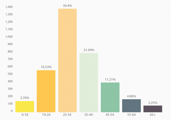 Исследование, проведенное информационным ресурсом Coindesk, показало, что Bitcoin чаще всего привлекает молодых людей. Почти две трети (60%) из 3,5 тыс. пользователей криптовалюты, которые участвовали в исследовании, оказались представителями возрастной группы 25-34.