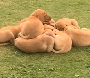 В английском городе Брэдстоун графства Девон восемь (8!!) щенков лабрадора легли кругом, прижавшись друг к другу — получился большой калачик.