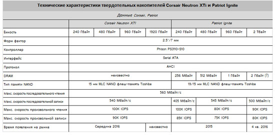 Компании Corsair и Patriot представили свои семейства твердотельных накопителей Corsair Neutron XT и Patriot Ignite на базе четырёхъядерного контроллера Phison PS3110-S10 около полутора лет назад. Изначально, такие накопители предназначались для пользователей, которым важна надёжность и производительность. Однако, с популяризацией разъёма M.2 и соответствующих SSD с интерфейсом PCI Express в 2015 году, компаниям пришлось пересмотреть позиционирование Neutron XT и Ignite. Так, Patriot добавила в модельный ряд версию с 240 Гбайт памяти, чтобы предлагать его покупателям с ограниченным бюджетом. Между тем, за последний год память типа NAND существенно подешевела, что дало возможность создавать на базе недорогих контроллеров SSDогромной ёмкости. Как следствие, партнёры Phison предложат покупателям, которым требуется твердотельный накопитель большого объёма, SSD c 1920–2000 Гбайт памяти в ближайшие месяцы.