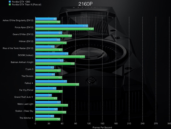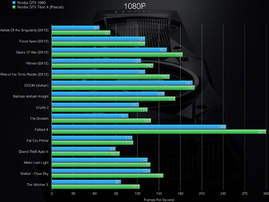 В сети появилось сравнение самых мощных современных видеокарт компании Nvidia. Работу Titan X с архитектурой Pascal и GTX 1080 сравнили на примере целого перечня различных видеоигр.