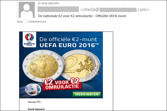В частности, зафиксированы массовые рассылки фальшивых уведомлений о крупном денежном выигрыше в лотерею, посвящённую предстоящему спортивному событию. Содержание вложений стандартное: лотерея была проведена уполномоченной организацией, адрес получателя был случайно выбран из большого количества электронных адресов, а для получения выигрыша необходимо ответить на письмо и предоставить необходимую персональную информацию.