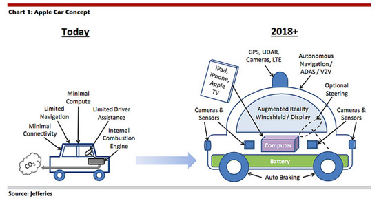 К таким выводам пришли аналитики агентства Jefferies & Co. По их расчётам, цена электромобиля, исходя из нынешней ситуации на рынке, составит 55 тысяч долларов. Запуск продаж, намеченный на 2019 год, поднимет стоимость акций Apple на 3 доллара, а операционная прибыль от производства автомобиля составит 20%.