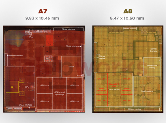 Это же явление можно увидеть рассмотрев устройство современных Ах-чипов Apple: для ядер GPU выделено больше места, чем для CPU, причем даже в А8Х с тремя CPU-ядрами.