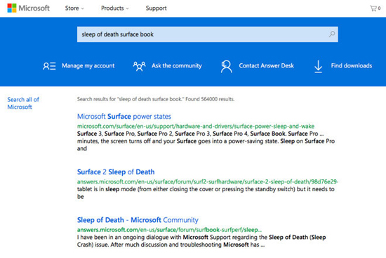 Три месяца он пытался жить с этой проблемой, пока не обнаружил, что она широко распространена среди пользователей устройства и успела получить название «сон смерти». На Reddit обсуждение проблемы занимает 50 тем, а сайт технической поддержки Microsoft выдает 75 000 результатов по запросу «Surface Sleep of Death».