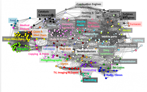 Также были выделены своеобразные технологические континенты, то есть, скопления разработок и изобретений в определённых частях света.