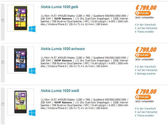 Ранее предполагалось, что европейская цена будет "чуть мягче" — на уровне 699 евро (примерно 29 800 рублей). Возможно, немецкие ритейлеры просто перестраховались и немного завысили стоимость устройства. Если цена останется на таком уровне, то с ней Nokia обойдет даже Apple — в Германии iPhone 5 с 32 ГБ памяти стоит 789 евро.