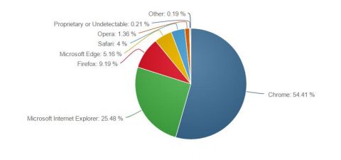 По браузерам доступны данные от компании Net Applications. Доля Edge в сентябре по сравнению с августом осталась почти неизменной, составляя 5,16%. Продолжает расти Chrome, достигнув 54,41%, у Internet Explorer 25,48% против 27,38% месяцем ранее. Третье место занимает Firefox с результатом 9,19%, за ним следуют Edge, Safari и Opera.
