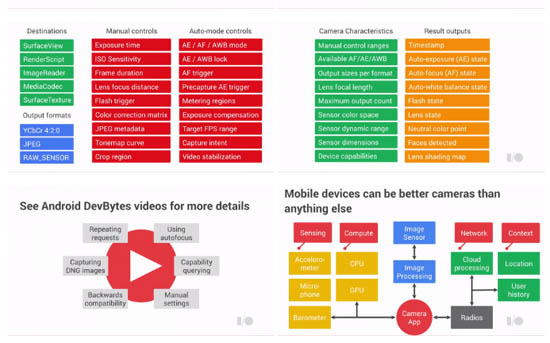 С обновлением Android L, анонсированным на прошлой неделе, команда Google не только представила публике переработанный графический интерфейс, но и обновила API камеры. Это позволит ускорить процесс съёмки, а также создавать более функциональные сторонние приложения. Новые API камеры предоставят возможность делать снимки в формате DNG, а также управлять различными настройками, например, временем экспозиции. Кроме того, разработчики приложений получат доступ к коррекции матрицы цвета. Напомним, что ранее только производители смартфонов могли использовать данную функцию.