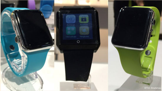 Модели, имитирующие фирменные часы Apple, называются iWatch, D Watch и Ai Watch стоят от 250 до 500 юаней (от 40 до 80 долларов). Судя по рекламным изображениям, некоторые модели поддерживает работу с картами microSD.