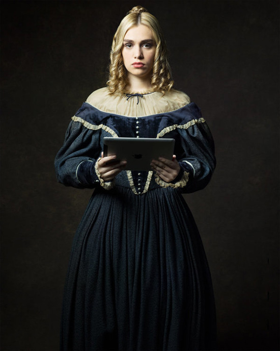 Если бы наши предки двести лет назад получили в руки iPhone или беспроводные наушники, их мир определенно перевернулся бы с ног на голову. Фотограф из Лос-Анджелеса Цинцзянь Мэн представил необычный проект под названием «Золотая лихорадка»: модели в костюмах 19-го века позировали девушке с современными гаджетами в руках.