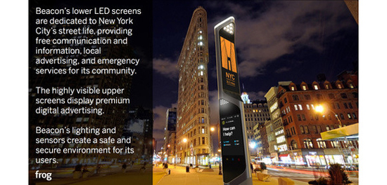 Маяк является победителем в категории «Лучший визуальный дизайн». Это спортивная и стройная конструкция из бетона и нержавеющей стали, высотой почти 12 футов. Он содержит набор светодиодных экранов, а верхняя часть матрицы дисплеев работает как общественная информационная цифровая доска, которая может показывать срочные и просто общественные объявления по всему городу.